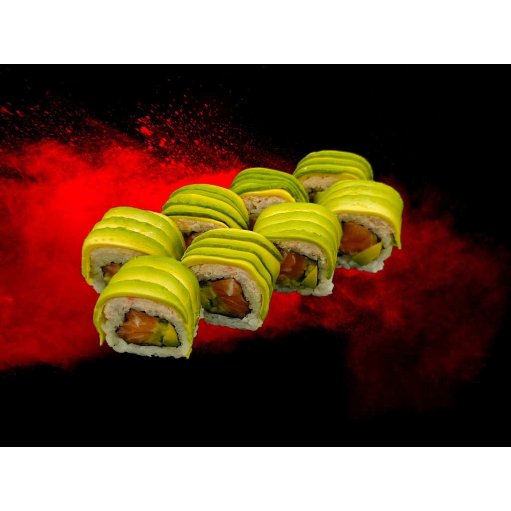 losos, krabí mix, okurka, avokádo, oshinko, lehce pikantní sezamová omáčka