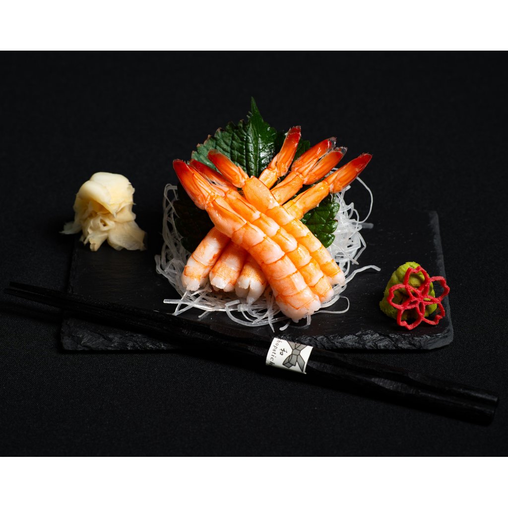 Šest krevet sashimi, servírovaných s jemně krájeným daikonem a aromatickým shiso. Lehká, čistá a svěží chuť.