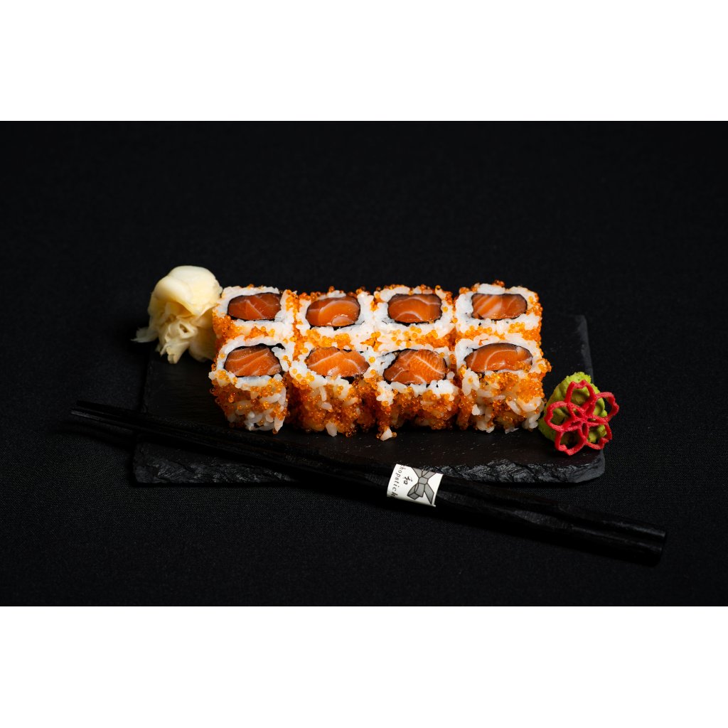 Netradiční maki rolka, ve které se prémiový losos z Faerských ostrovů spojuje s tobikem. Nabízí zábavný kontrast textur a chuťovou originalitu.